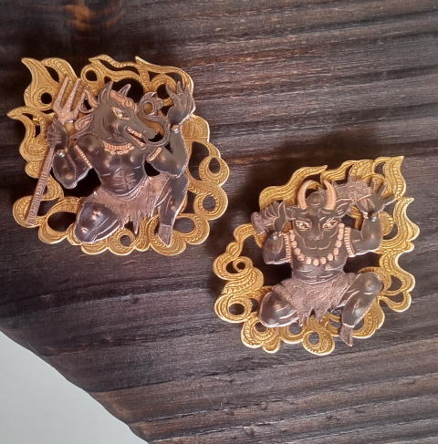 牛頭 馬頭 ブローチ 各¥11000 横5.5cm 18~22g 銅 真鍮製