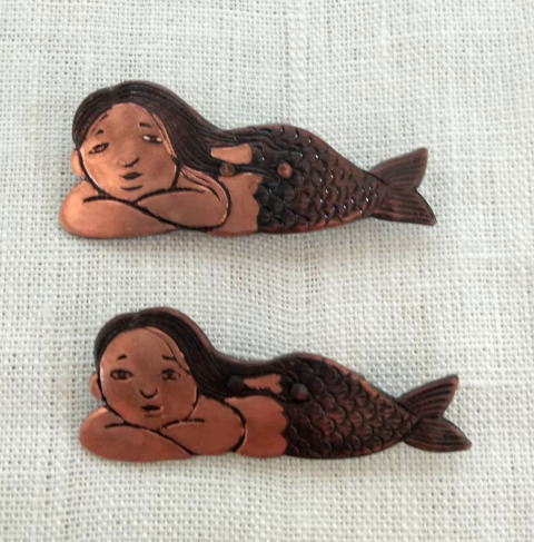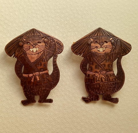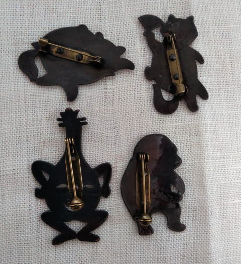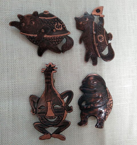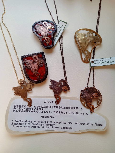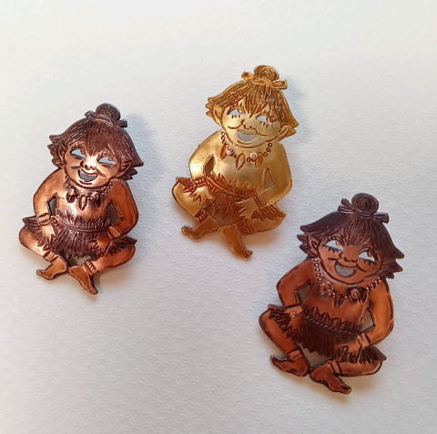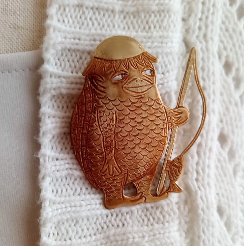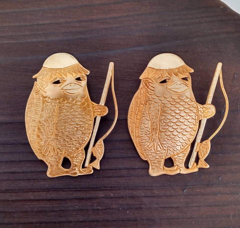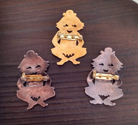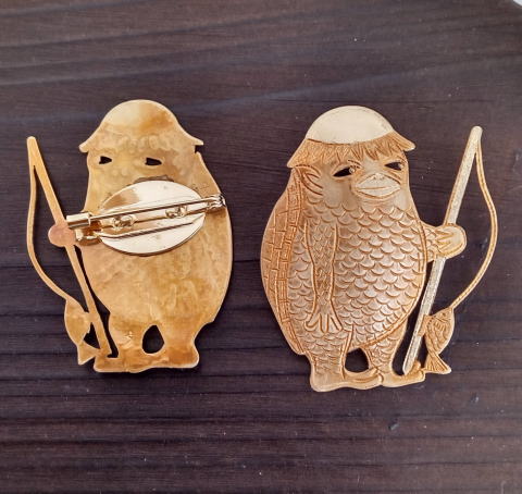 ![]() ![]() ![]() ![]() フィッシャー河童ブローチ 各¥4180 縦5.2cm 10g 真鍮製 釣りがうまいばかりに豊満な体になってしまった河童のブローチです 瘦せる気一切なし あるがままで生きるのです |