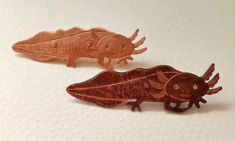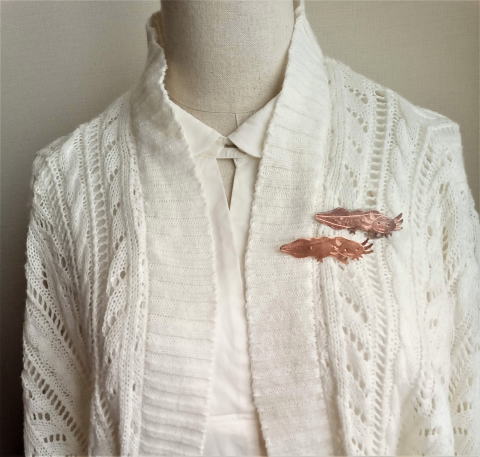 オオサンショウウオ ¥3500 のタックピンです 荒くれ外来種 のんびり絶滅危惧種 正反対のコンビです サンショウウオ 想定以上に 硫化着色の銅の色と質感がぴったりです ![]() |