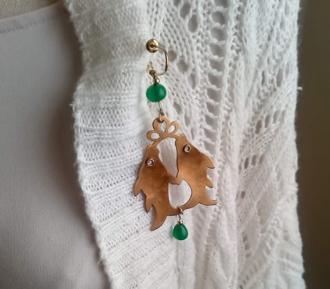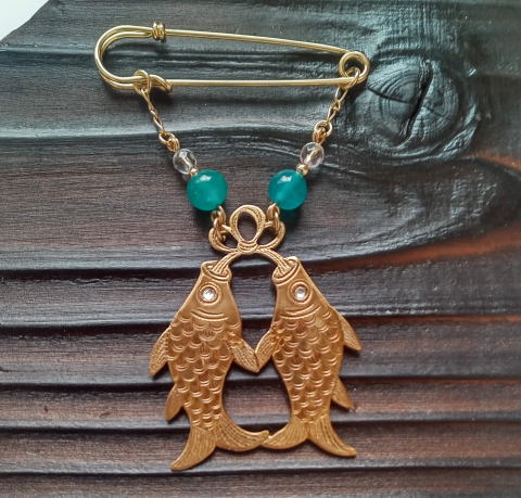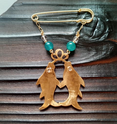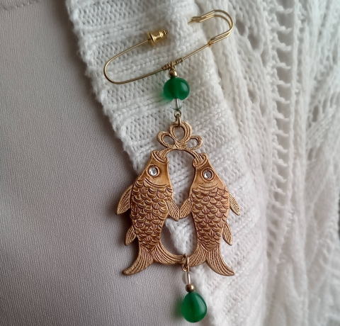 | pinb-1 結び双魚ブローチ 各¥5000 古来からの立身出世のシンボル 双魚をモチーフにした新作です 真鍮製 空歩さんのトンボ玉使用 魚体長さ5cm 重さ11g |