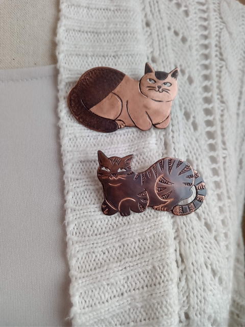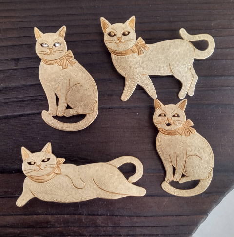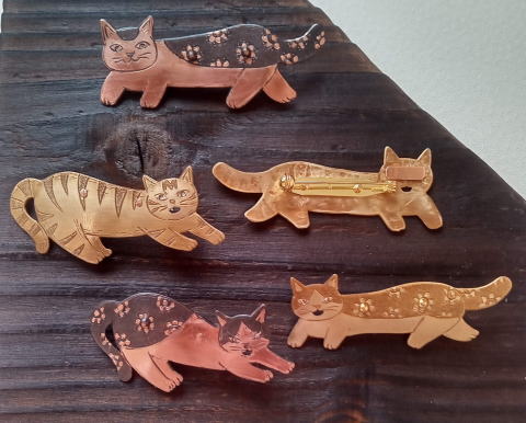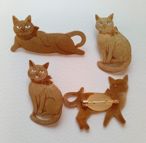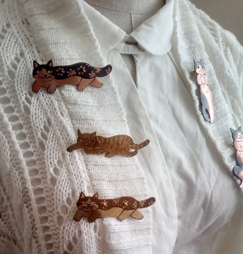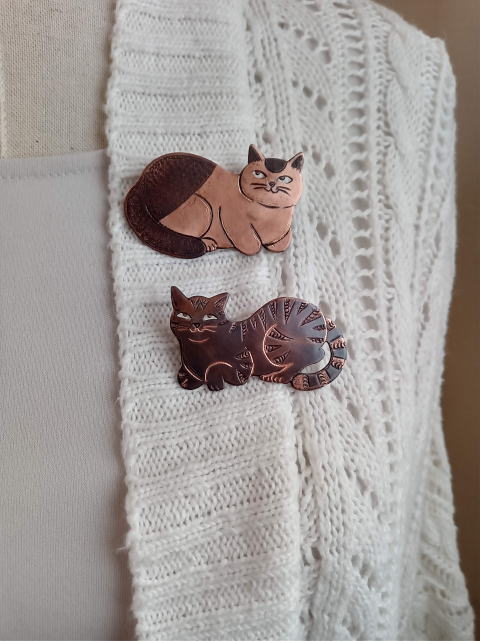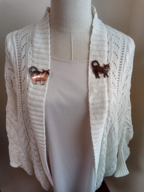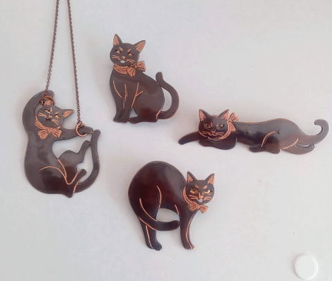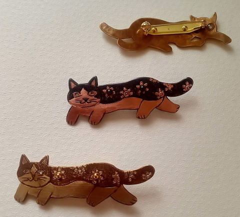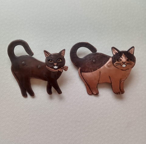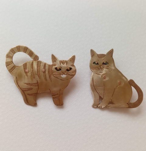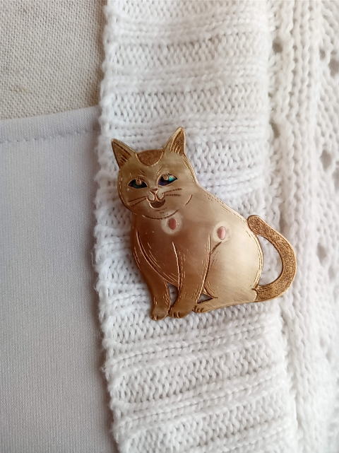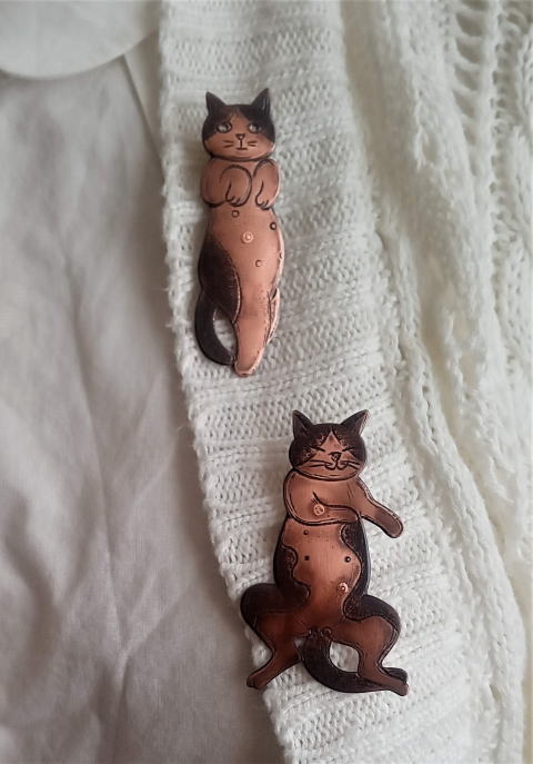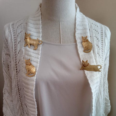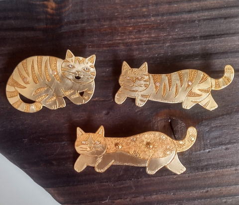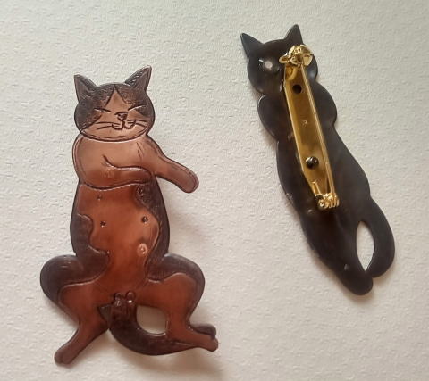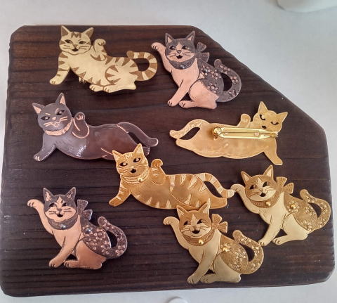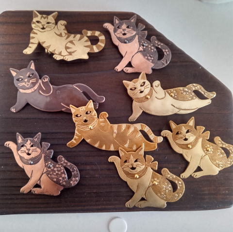 7g 5.5cm 銅製 まるいおしりのお座り猫です![]() ![]() ビーブッダの招き猫は 招くだけでなく誘っているあざとい猫でございます まねき誘い猫ブローチ 各¥3500 お座りの猫 横 4.5cm 7g 寝てる猫 横6cm 9g