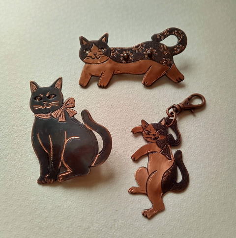 ![]() ![]() ![]() ↓ 猫のおしりの可愛さにクローズアップしたブローチです ![]() ![]() ![]() ![]() ![]() ![]() ![]() ![]() ![]() ![]() ![]() ![]() 作品のモデルになってくださる家の猫達です ![]() ![]() ![]() ![]() ![]() ![]() ![]() 本体は銅で 硫化着色で限界ギリギリまで黒くしました ハンター黒猫¥3500税別 横8cm 8g ![]() ![]() ![]() 猫の中でも「つん」 成分 多めの白猫様を作ってみました! 白猫様ブローチ 真鍮の表面を鏨で打ってザラザラにすると乱反射して白っぽく見えるのです ![]() ![]() ![]() ![]() 健康そのもの 良い肉づきに仕上がりました! 黒猫ブローチ¥4180 花柄猫ブローチ¥3850 踊る猫TOP¥3300 各 銅製 |
