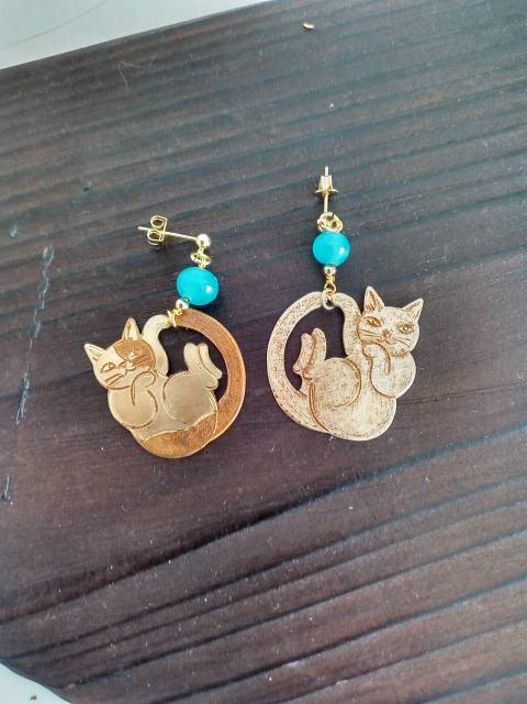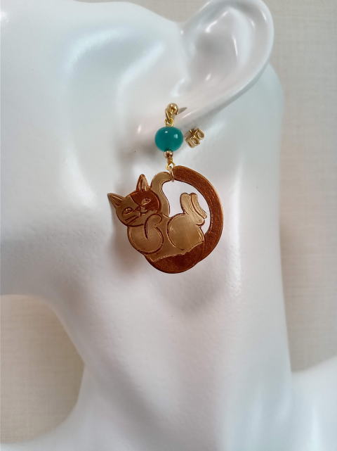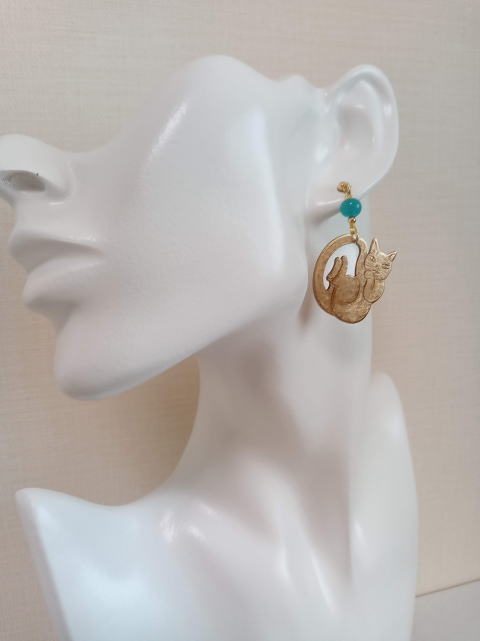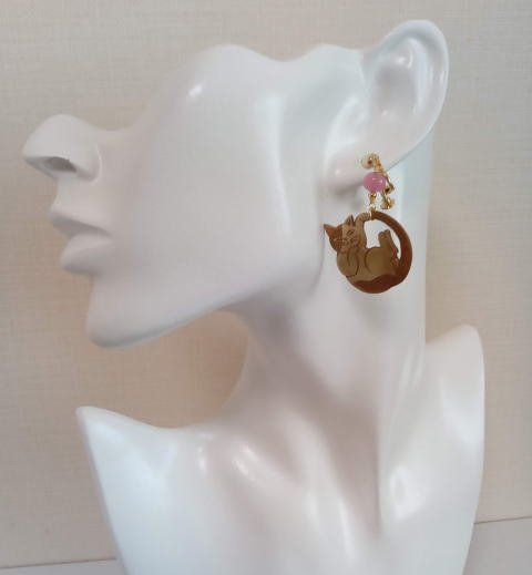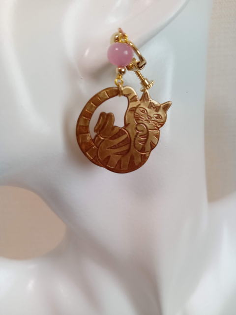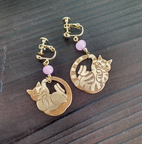 eo-8 左 秋色二つの顔を持つ猫ピアス ¥3300 片方5g モチーフ縦2cm 銅製 カーネリアン ガーネット使用 eo-9 右 ドロップ型透かし猫ピアス 猫のもつ二面性をピアスであらわしてみました |