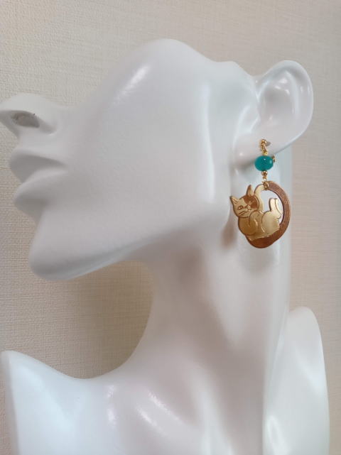 丸猫ピアス ¥6600 横2.5cm 片側4g 真鍮製 ガラス