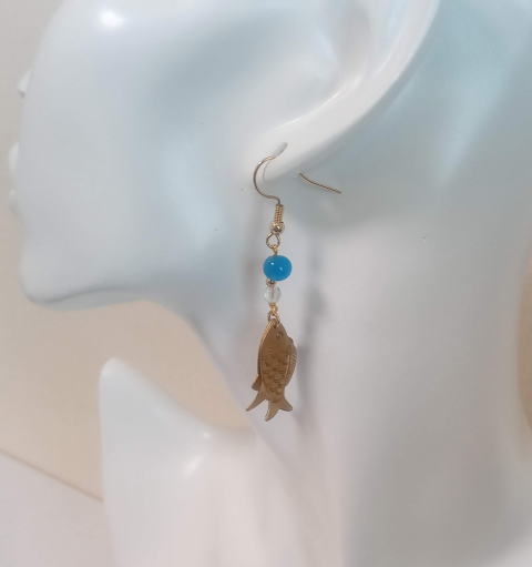 eo-13 蓮乗り仏ピアス 真鍮の金色にトルコ石の水色に、ボツワナアゲート