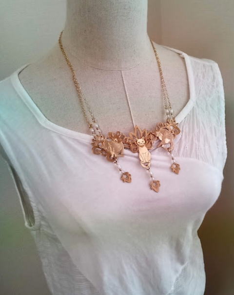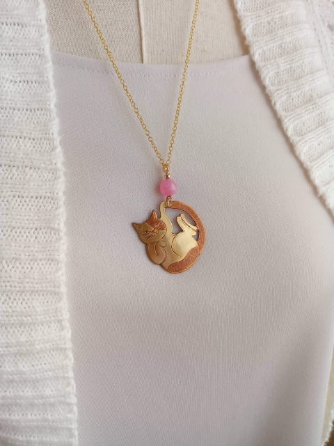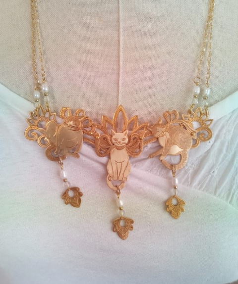 家でゴロゴログネグネしている猫をモデルにしました ねこは粘土のように形態が自在なので うまく瓔珞に嵌まってくれます |