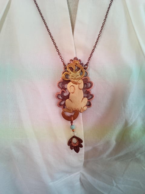 夜の顔のあるうさぎ カードスタンドが好評だった 味を占めてネックレス化しました