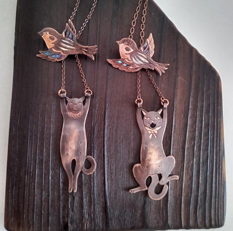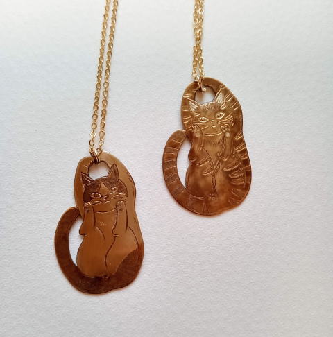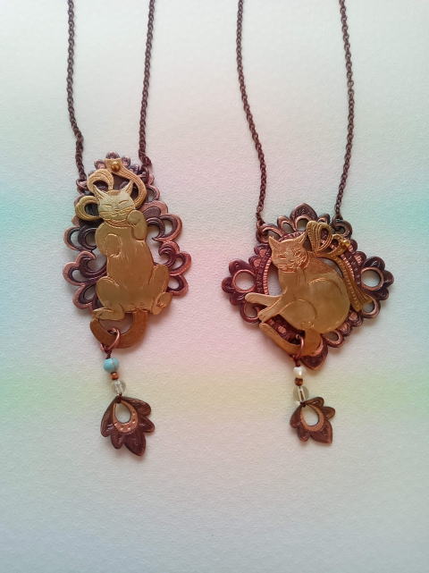 猫シルエットネックレス 各¥9500 シルエットで というご希望でしたが チェーンを通す部分を猫耳にしたのを お気に召していただけまして両方お買い上げいただきました |