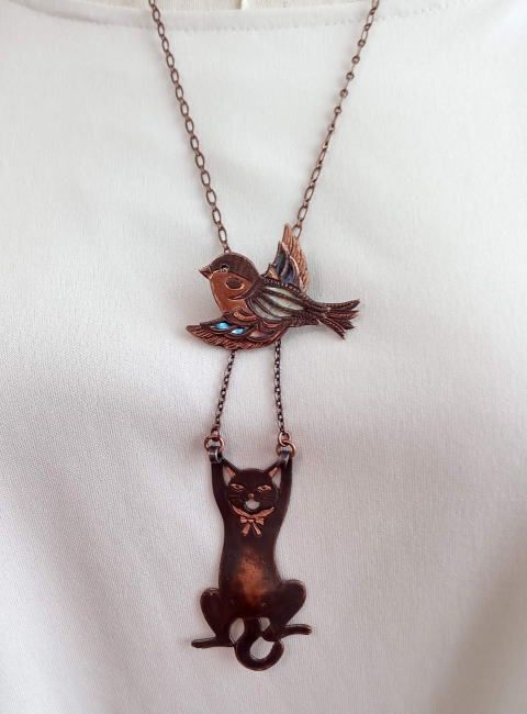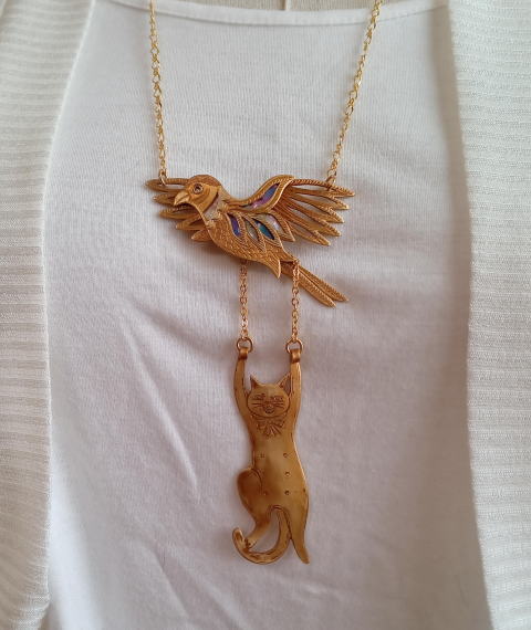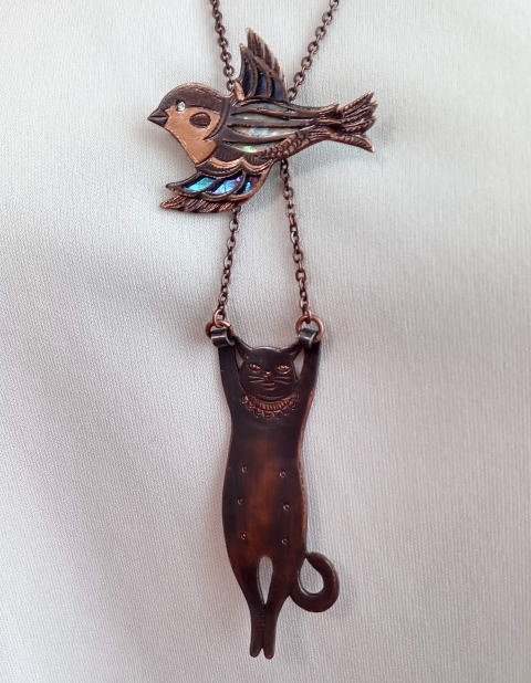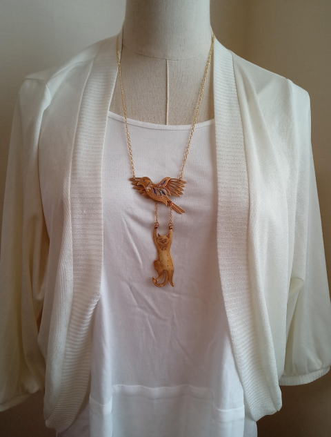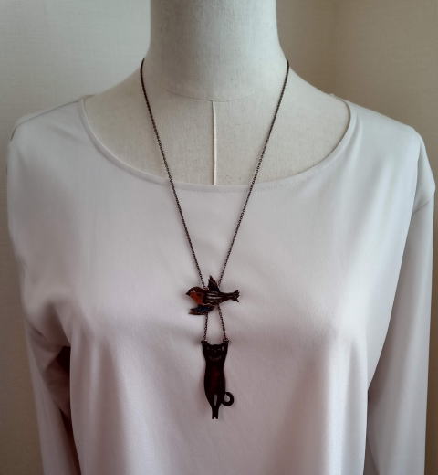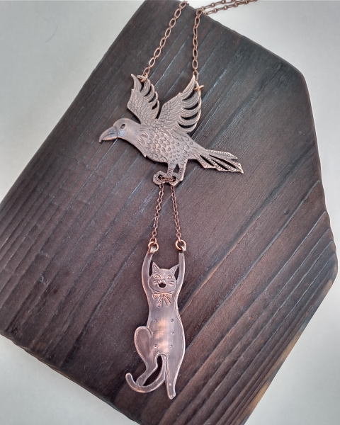 黒いカラスにヤンチャ系黒猫 黒で統一したシックなネックレスです
