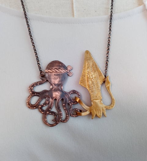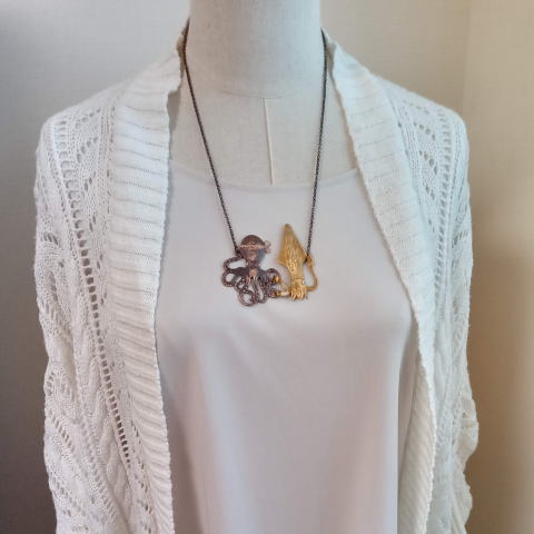 ![]() ![]() ![]() なぜだか無性に作りたくなったリアル味タコとイカです 軟体フレンズネックレス ¥4800 税別 22g 横7.5cm 銅 真鍮製 |