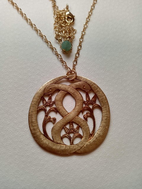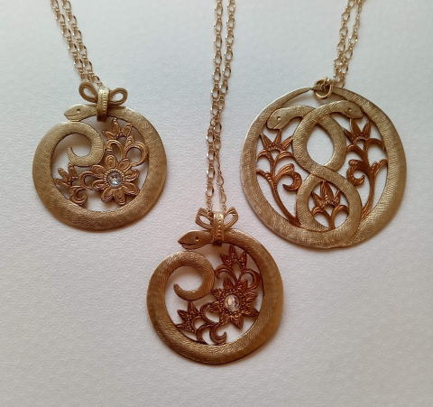 ![]() 2025年の干支は 巳! そういうわけでヘビモチーフでネックレスを作ってみましたが 意外 と言ったらヘビに失礼ですが 意外な程にかわいらしく出来ました ![]() ![]() ![]() ヘビ子ネックレス ¥4950 直径3.7cm 9g 真鍮製 ガラスパーツ貼り付けリボンがかわいいよー!なヘビ子ネックレスです シンクロヘビネックレス ¥5500 直径4.7cm