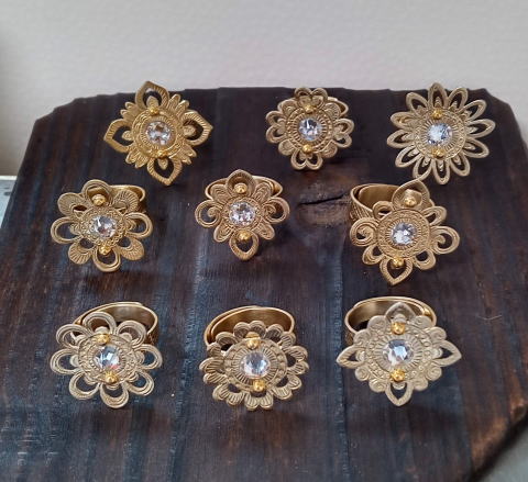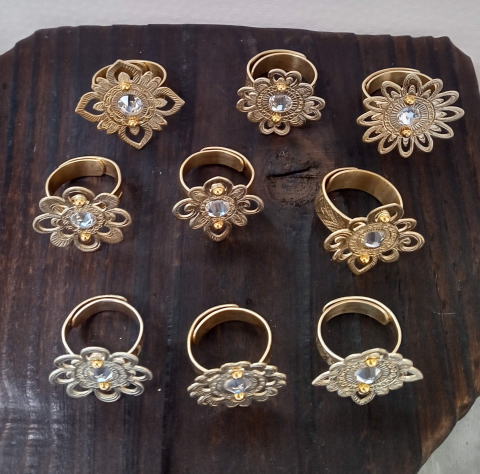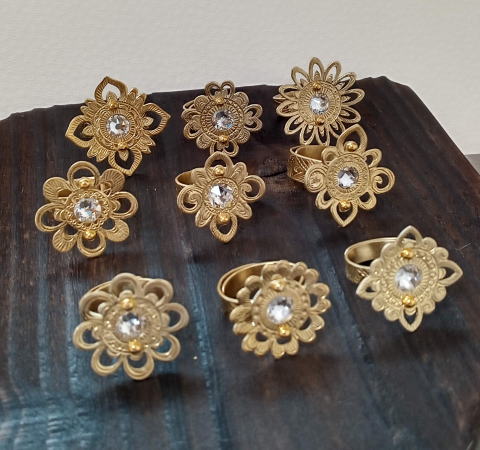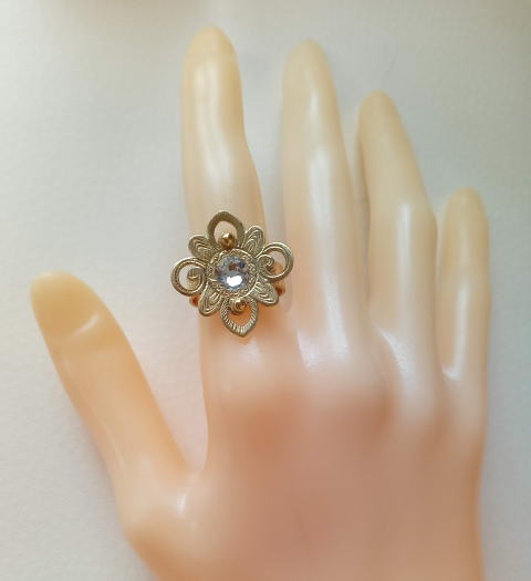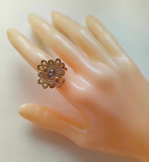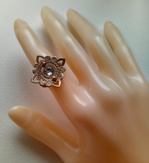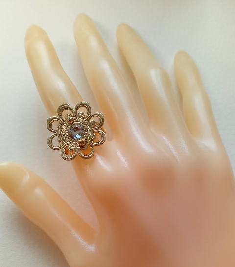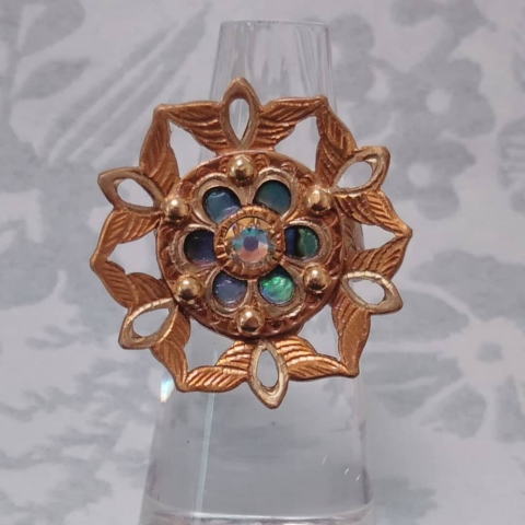 六弁花宝相華の指輪 ¥9900 真鍮製 スワロフスキー 螺鈿