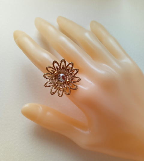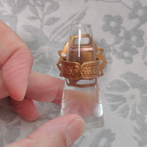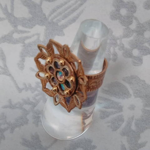 ![]() ![]() 大きなスワロフスキーが嵌まった 宝相華が花開く真鍮リングです