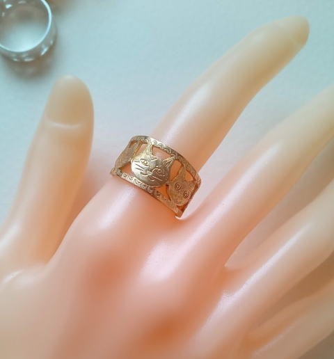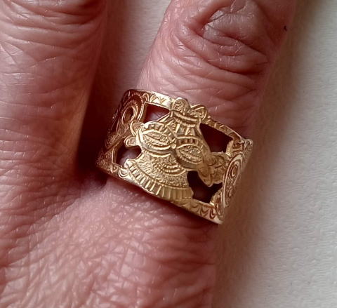 12号前後 2g 真鍮製 超細密な透かし彫り 仏のリングです |