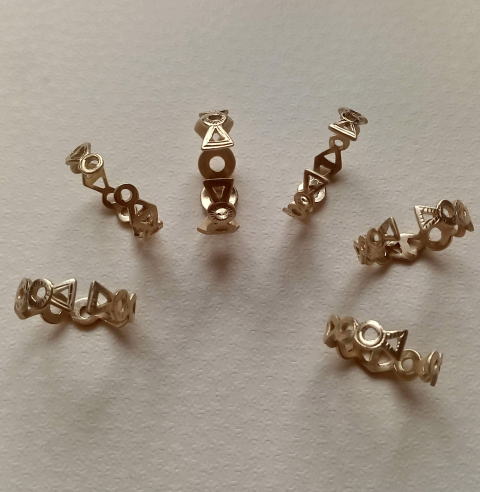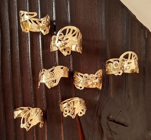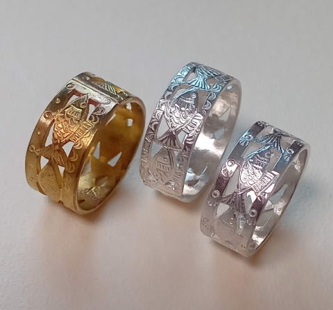 ![]() ![]() ![]() ![]() ![]() ![]() ![]() 古墳連結リング 各¥4400 真鍮製 一見オシャレな透かし彫りリング 気づいた人はちょっと嬉しい指輪です |