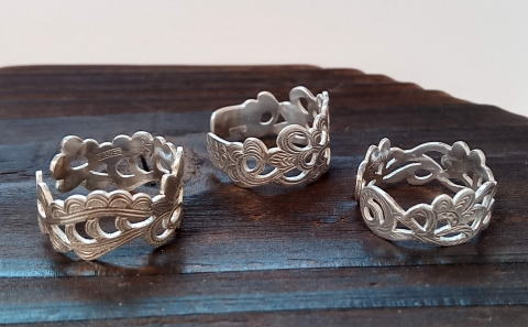 2024宝相華リング 丸める前に全容を撮影しておきました どれも美しいです!甲乙つけがたし! 各¥7700 純銀製 ![]() |