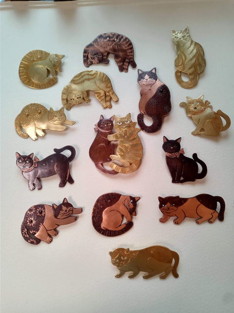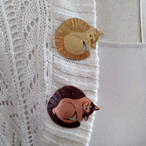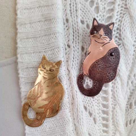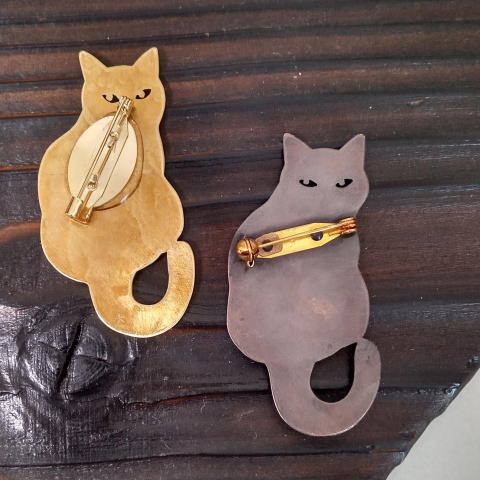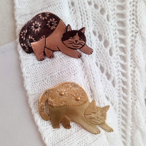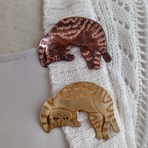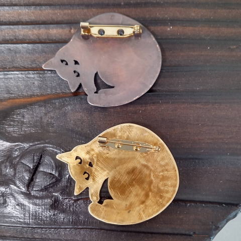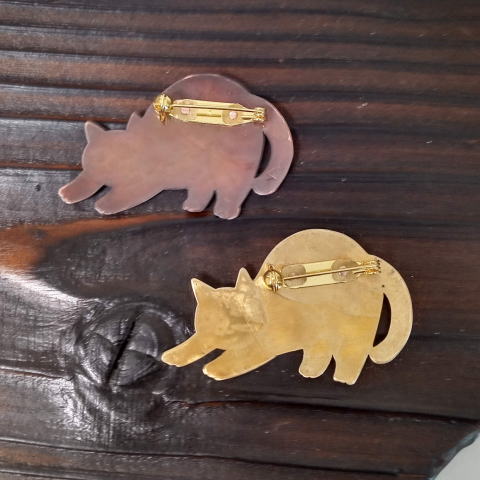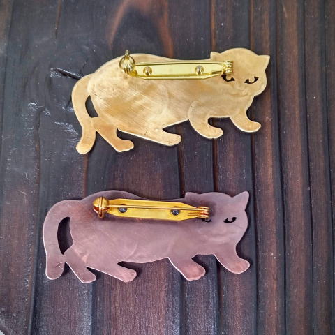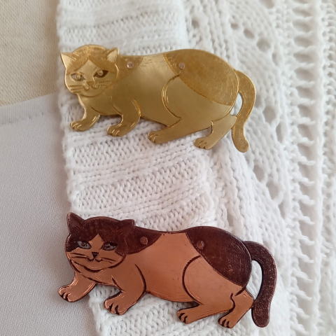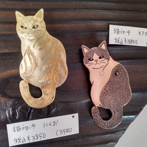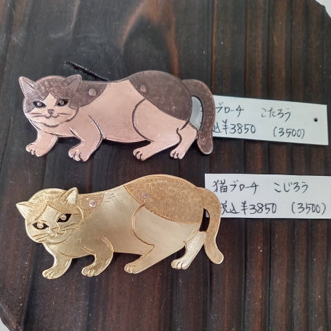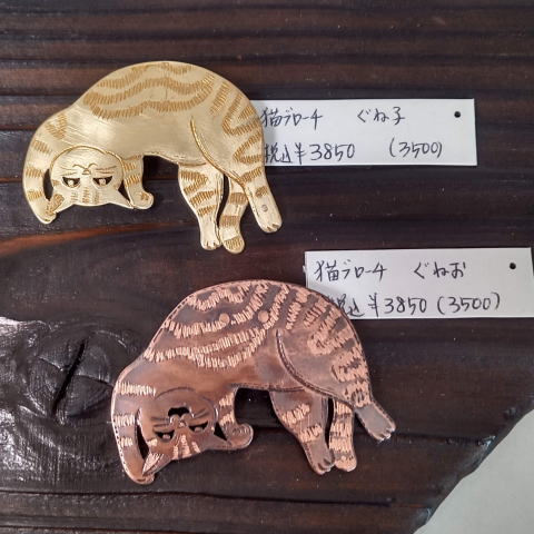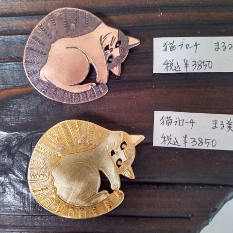 7g 5.5cm 銅製 まるいおしりのお座り猫です![]() ![]() ビーブッダの招き猫は 招くだけでなく誘っているあざとい猫でございます まねき誘い猫ブローチ 各¥3850 お座りの猫 横 4.5cm 7g 寝てる猫 横6cm 9g