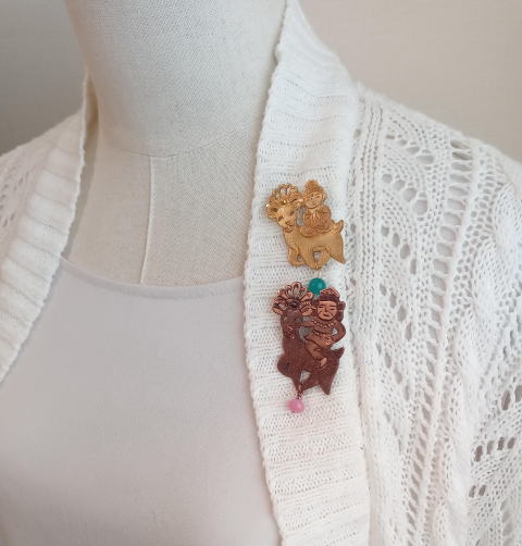 ハッピー四葉乗り鹿 ブローチで帯留め ¥4100